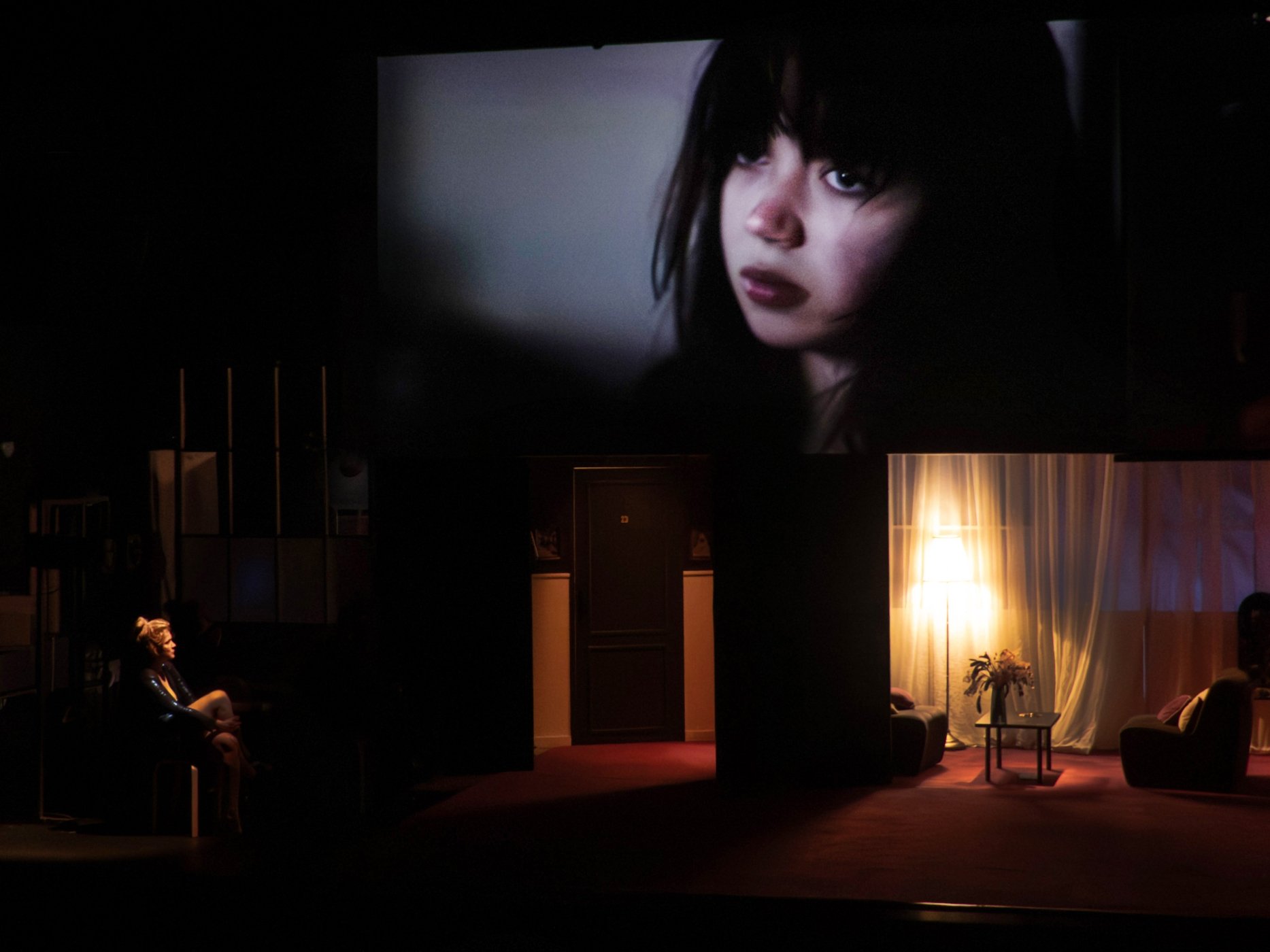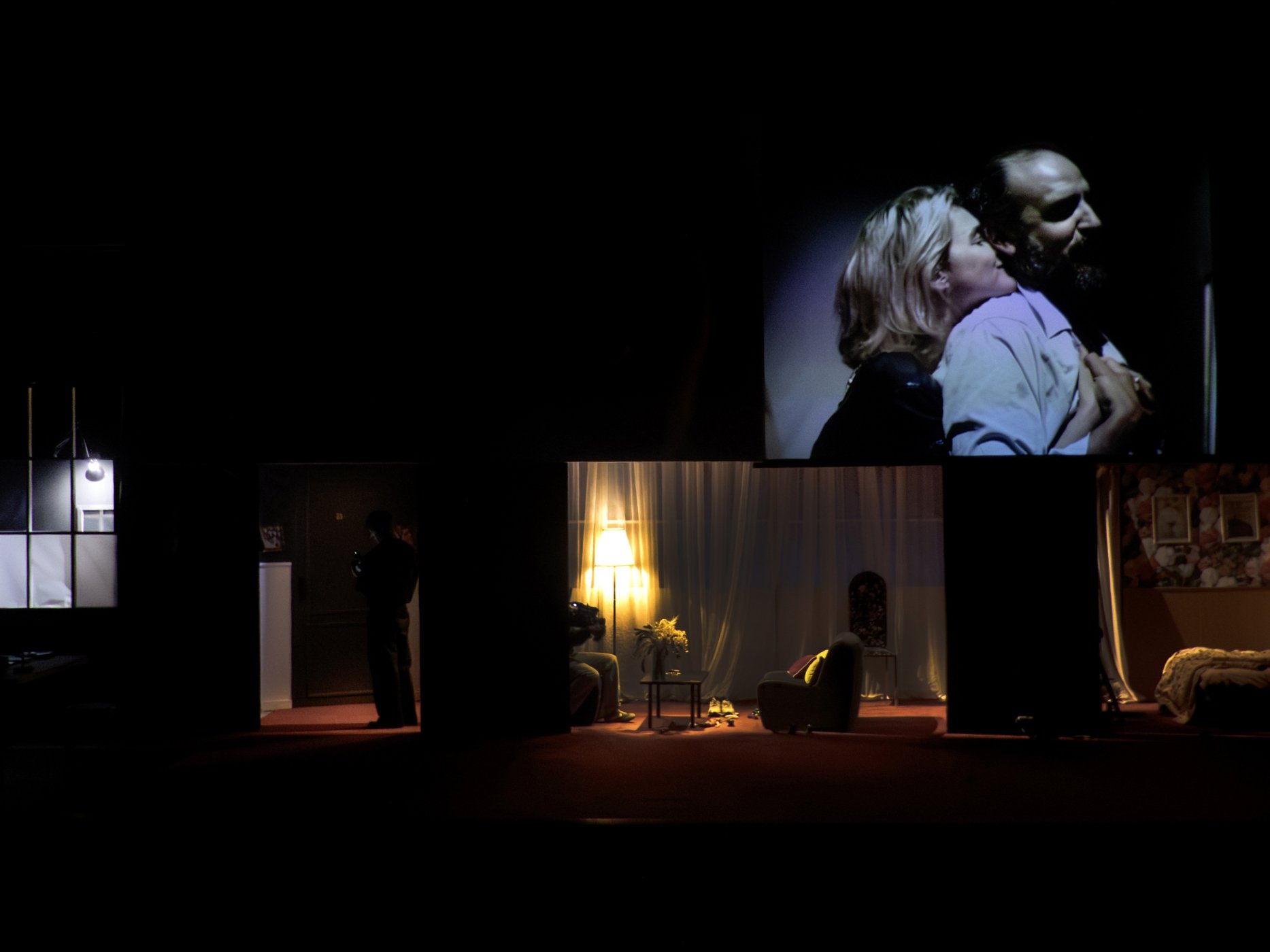 aux maltraitances de son mari. Sur la musique électronique de Quinquis, une équipe filme ces deux personnages en direct, manipule une marionnette