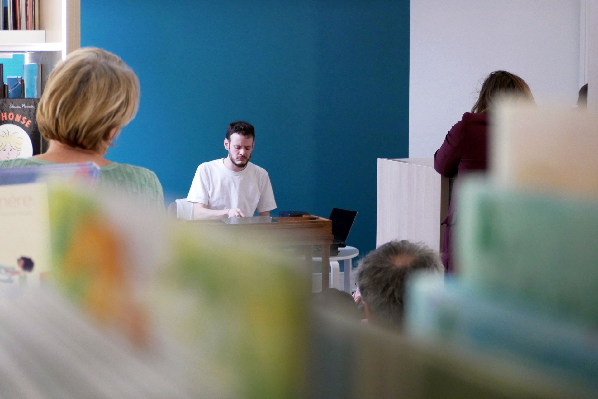 Un concert intimiste et immersif, pensé au cœur des rayonnages. - Anthony Breurec — Next – Note d’intention