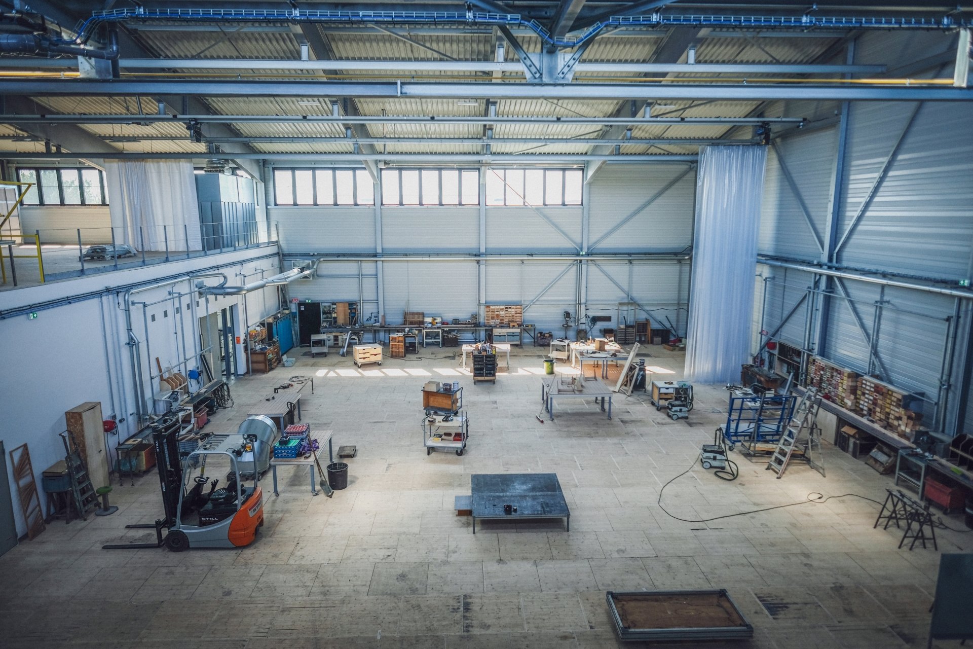 - 2710 m2 (soit presque un demi-terrain de foot 😜) dédiés à la découpe, soudage, rabotage, peinture de décors mais aussi à la conception de scénographies d'événements, de mini-machines animées ou de systèmes relevant des arts numériques et des réseaux. Car le spectacle vivant évolue et ses besoins techniques également !