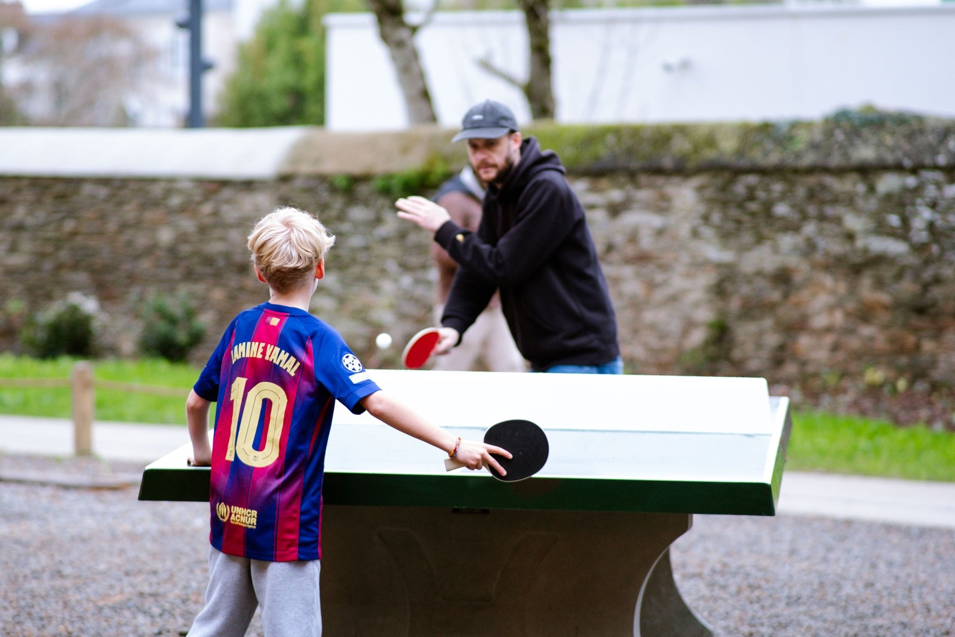 Ca y est, la table de ping-pong est arrivée (raquettes et balles à retirer au resto) ! Pour demain, on rêve aussi d'y installer un panier de basket...