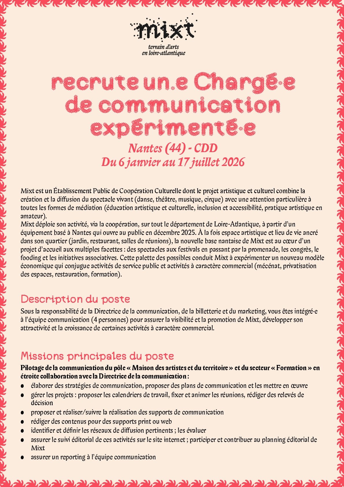 Les offres d'emploi sont le plus souvent publiées sur nos réseaux sociaux (Facebook, Instagram et LinkedIn) ou dans des canaux spécialisés (La lettre du spectacle, reditech, profilculture...).